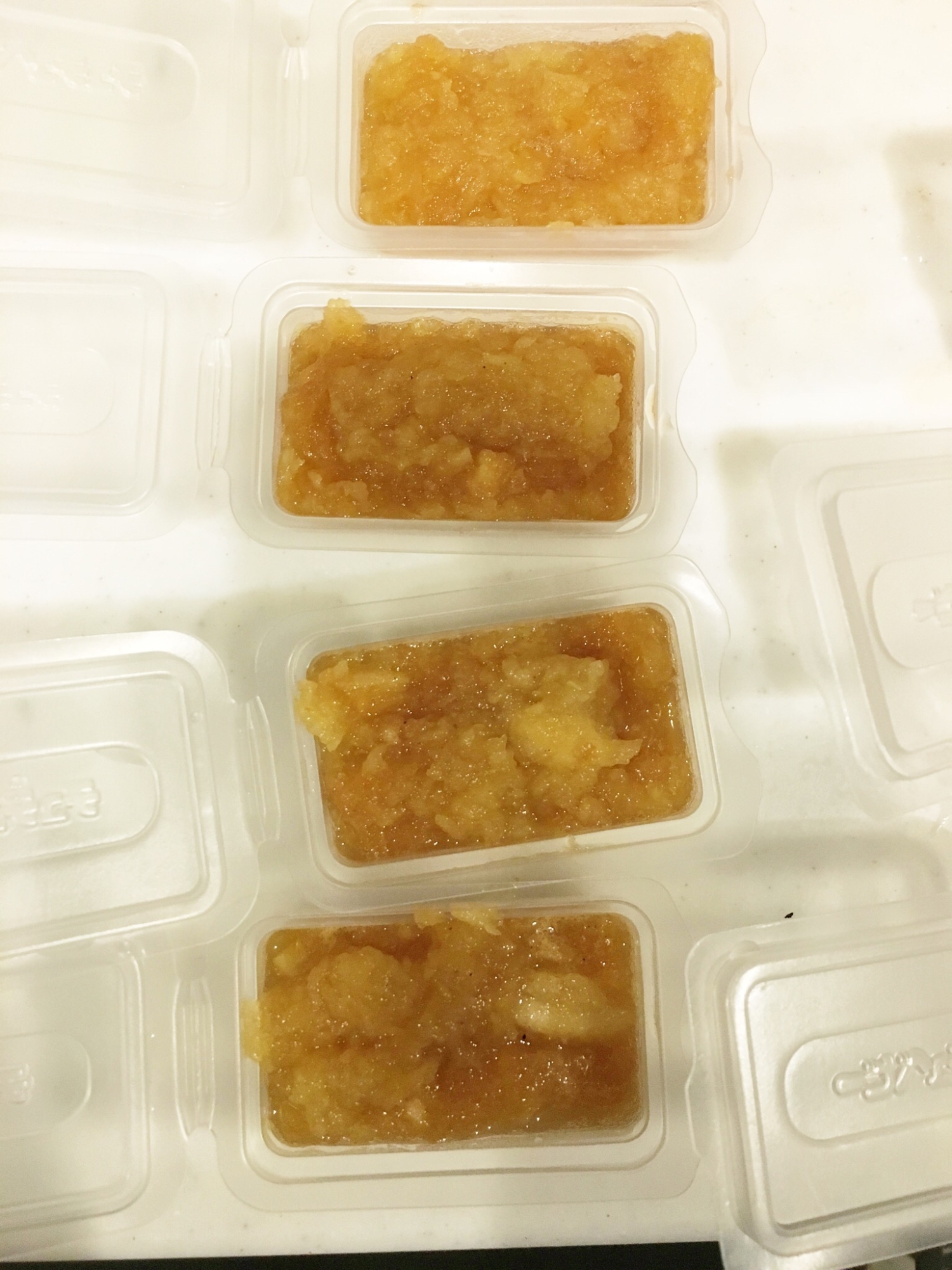 離乳食28日目 キューピーの瓶詰め離乳食で りんごを始めました 余りは冷凍 知育プット